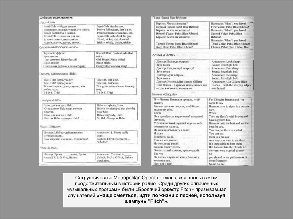 Сотрудничество Metropolitan Opera с Техаса оказалось самымпродолжительным в истории радио. Среди других оплаченных
