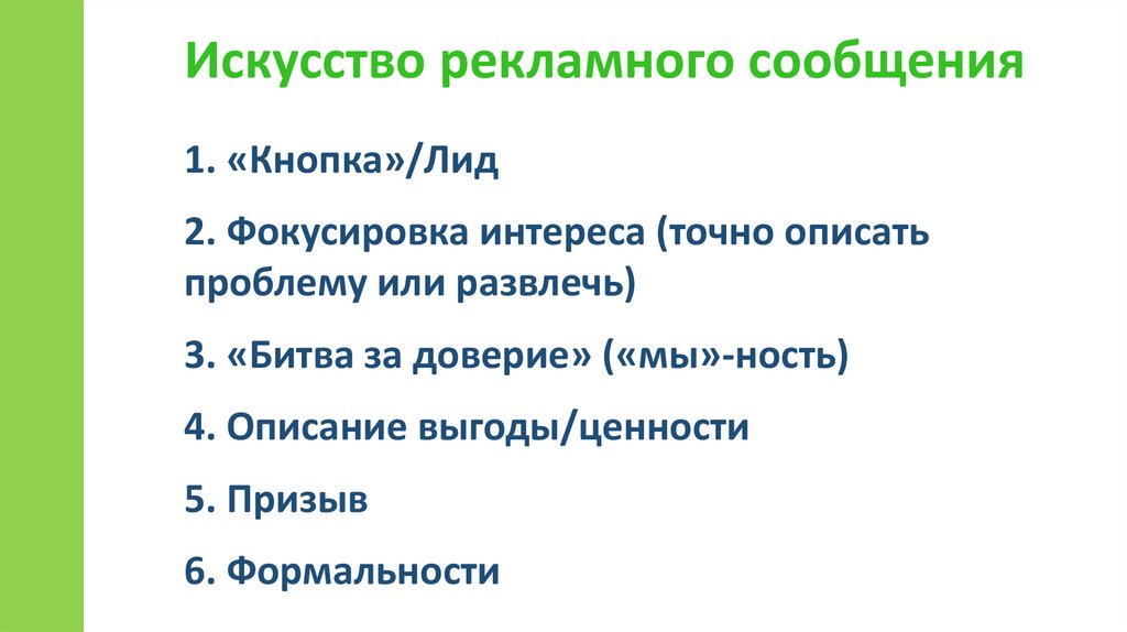 Искусство рекламного сообщения1. «Кнопка»/Лид