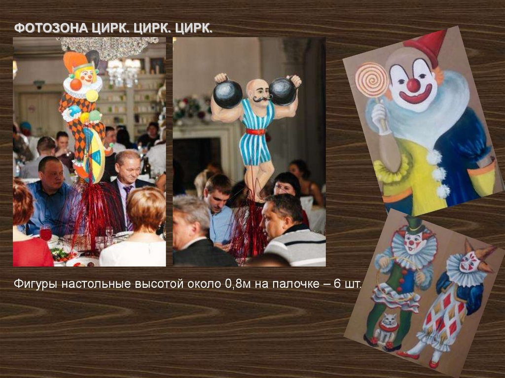 ФОТОЗОНА ЦИРК. ЦИРК. ЦИРК.Фигуры настольные высотой около 0,8м на палочке – 6 шт.