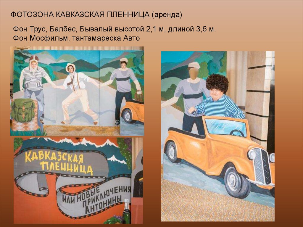 ФОТОЗОНА КАВКАЗСКАЯ ПЛЕННИЦА (аренда)Фон Трус, Балбес, Бывалый высотой 2,1 м, длиной 3,6 м.