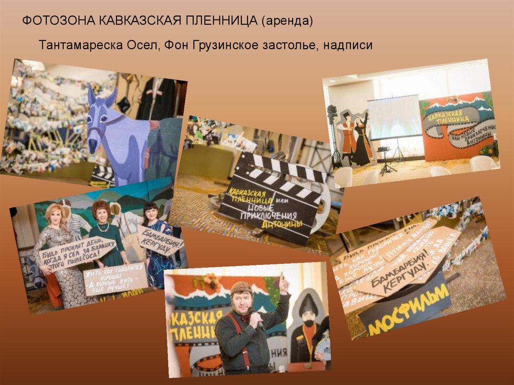 ФОТОЗОНА КАВКАЗСКАЯ ПЛЕННИЦА (аренда)Тантамареска Осел, Фон Грузинское застолье, надписи