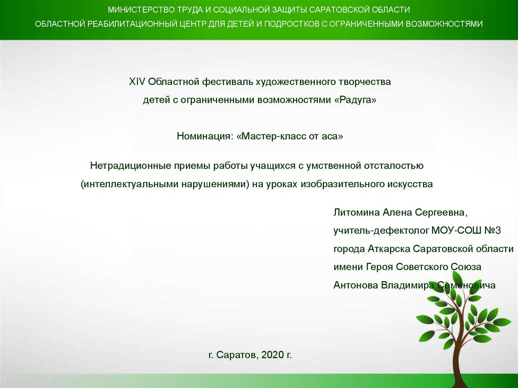 МИНИСТЕРСТВО ТРУДА И СОЦИАЛЬНОЙ ЗАЩИТЫ САРАТОВСКОЙ ОБЛАСТИОБЛАСТНОЙ РЕАБИЛИТАЦИОННЫЙ ЦЕНТР ДЛЯ ДЕТЕЙ И ПОДРОСТКОВ С ОГРАНИЧЕННЫМИ ВОЗМОЖНОСТЯМИ