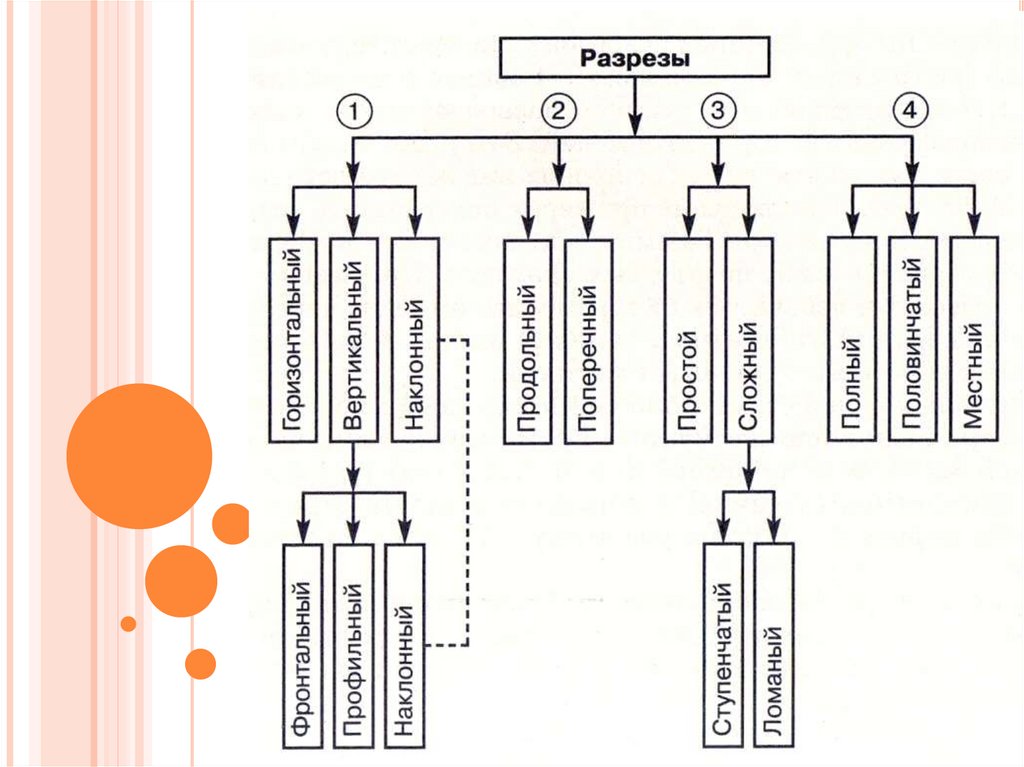 3. Разрезы делятся на четыре группы: 1. По признаку расположения секущей плоскости относительно плоскостей проекций