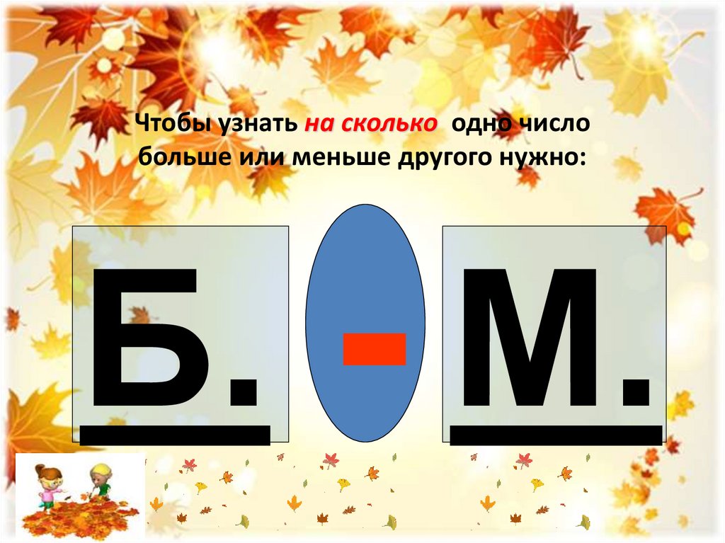 Чтобы узнать на сколько одно числобольше или меньше другого нужно: