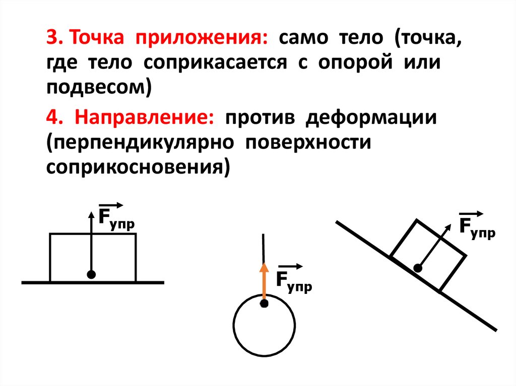 3. Точка приложения: само тело (точка,где тело соприкасается с опорой или