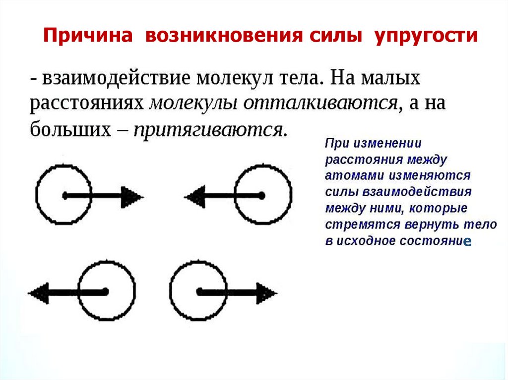 Причина возникновения силы упругостие