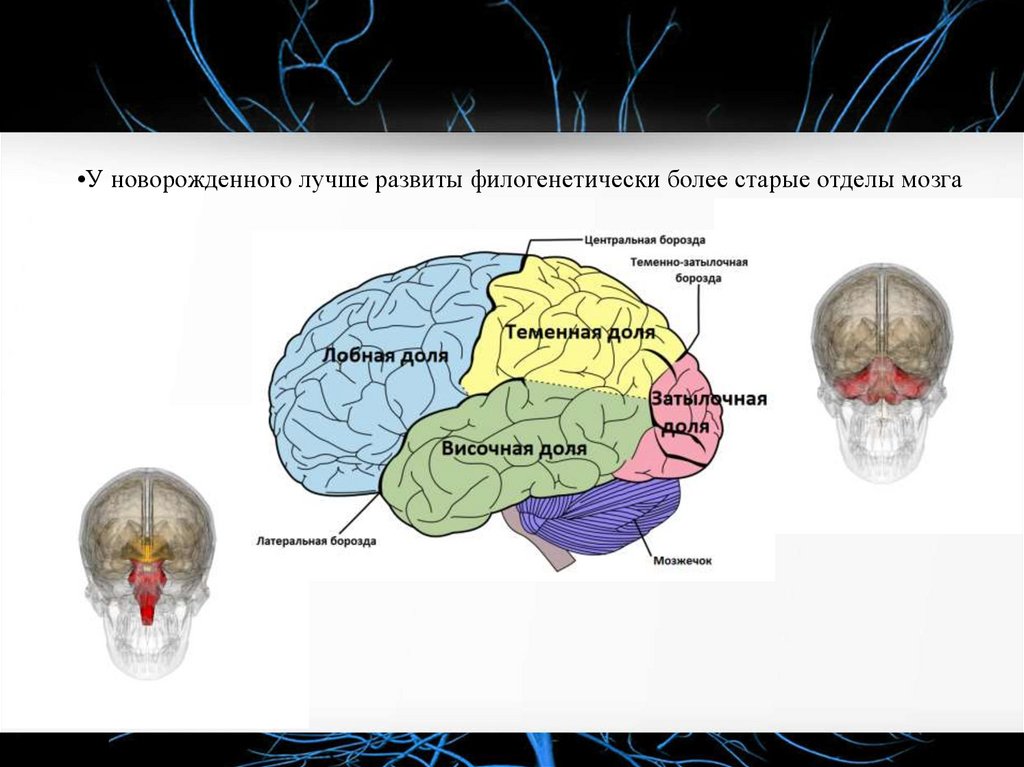 •У новорожденного лучше развиты филогенетически более старые отделы мозга5.