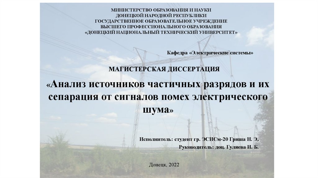 ТЕМА МАГИСТЕРСКОЙ ДИССЕРТАЦИИ: «АНАЛИЗ ИСТОЧНИКОВ ЧАСТИЧНЫХ РАЗРЯДОВ И ИХ