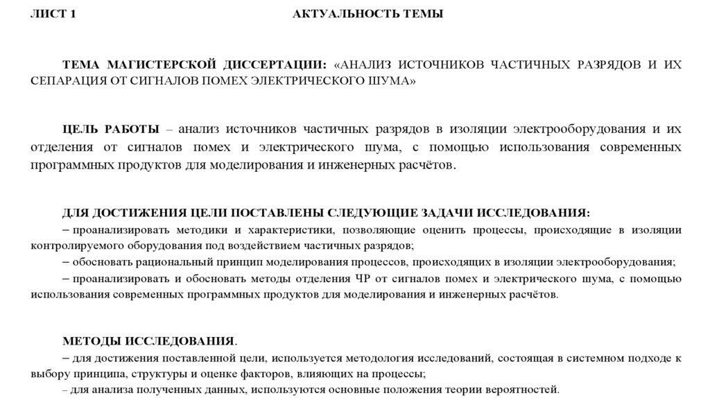 ЛИСТ 1АКТУАЛЬНОСТЬ ТЕМЫ