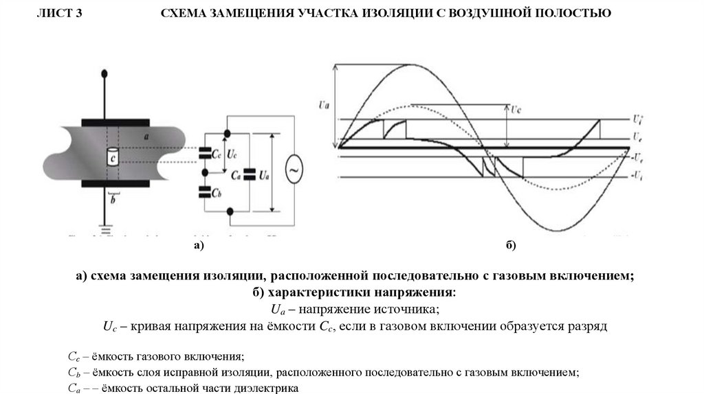 а) схема замещения изоляции, расположенной последовательно с газовым включением;
