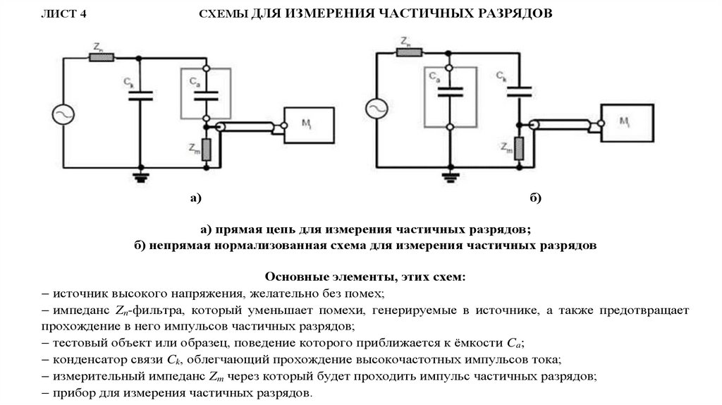 ЛИСТ 4СХЕМЫ ДЛЯ ИЗМЕРЕНИЯ ЧАСТИЧНЫХ РАЗРЯДОВ
