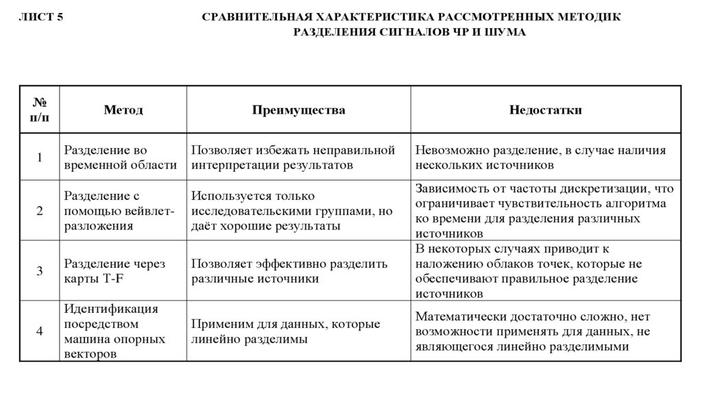 ЛИСТ 5СРАВНИТЕЛЬНАЯ ХАРАКТЕРИСТИКА РАССМОТРЕННЫХ МЕТОДИК