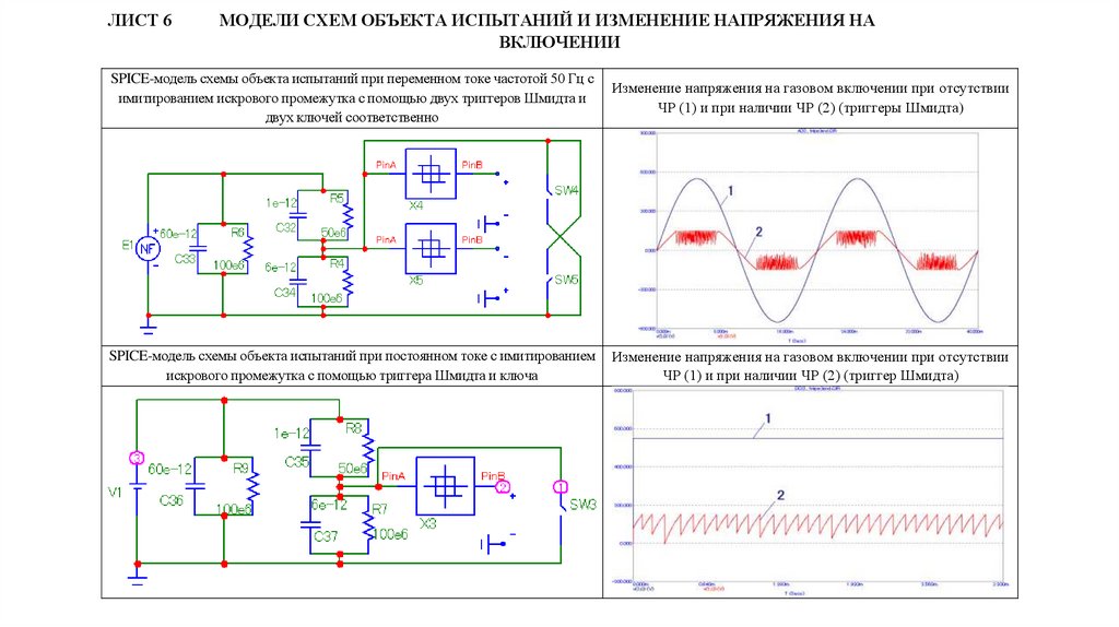 ЛИСТ 6МОДЕЛИ СХЕМ ОБЪЕКТА ИСПЫТАНИЙ И ИЗМЕНЕНИЕ НАПРЯЖЕНИЯ НА