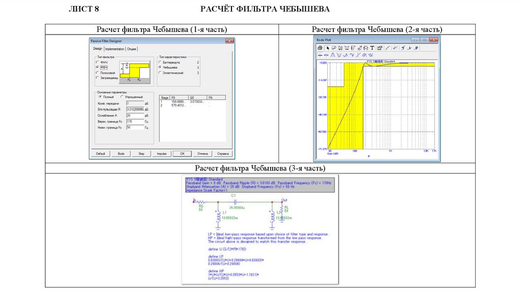 ЛИСТ 8РАСЧЁТ ФИЛЬТРА ЧЕБЫШЕВА
