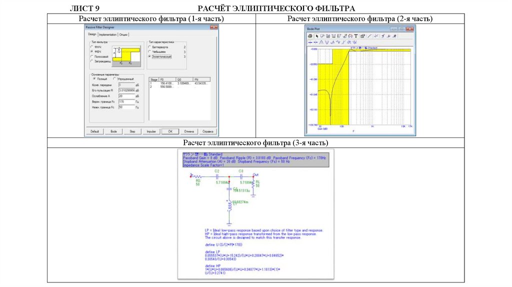 ЛИСТ 9РАСЧЁТ ЭЛЛИПТИЧЕСКОГО ФИЛЬТРА