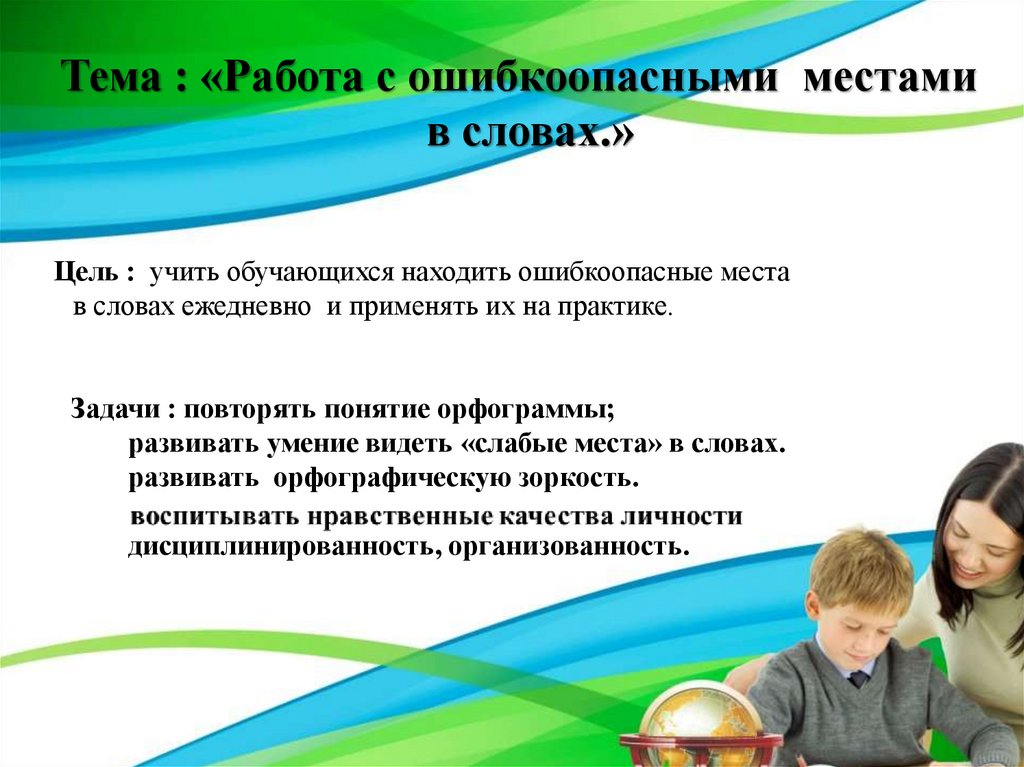 Тема : «Работа с ошибкоопасными местамив словах.»