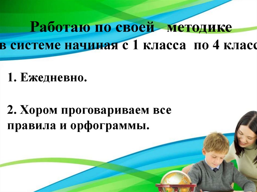 Работаю по своей методикев системе начиная с 1 класса по 4 класс