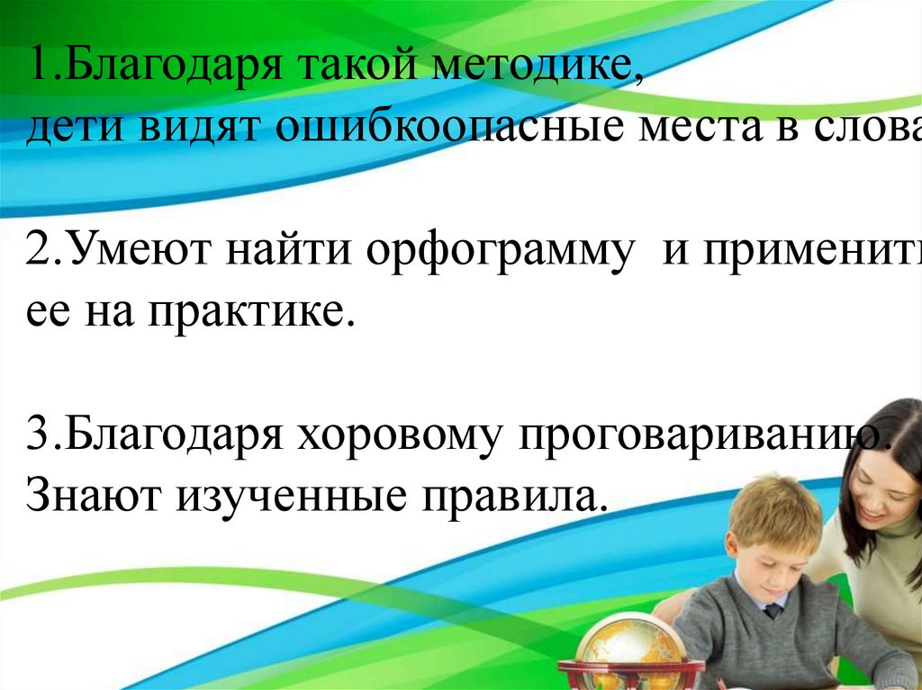 1.Благодаря такой методике,дети видят ошибкоопасные места в слова