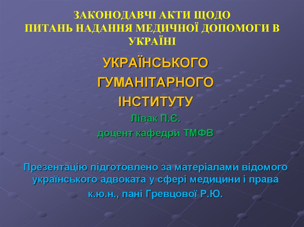 1. ЗАКОНОДАВЧІ АКТИ ЩОДО ПИТАНЬ НАДАННЯ МЕДИЧНОЇ ДОПОМОГИ В УКРАЇНІ