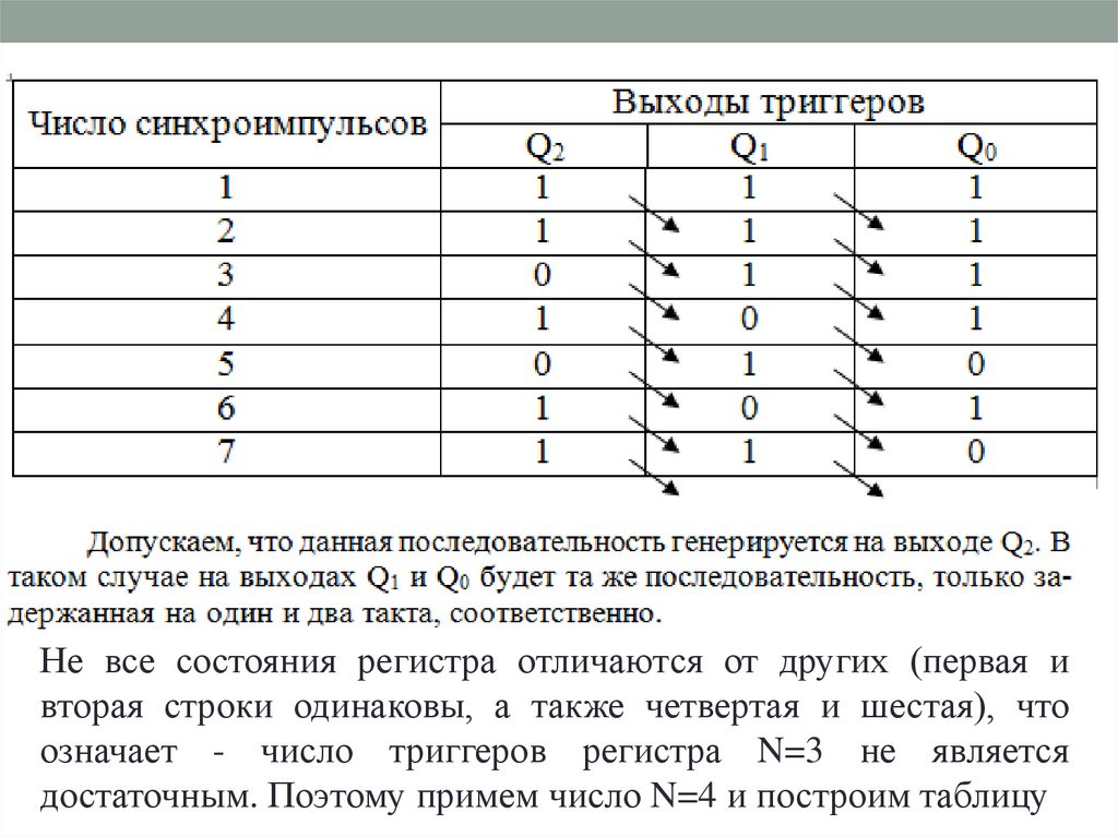 Не все состояния регистра отличаются от других (первая ивторая строки одинаковы, а также четвертая и шестая), что