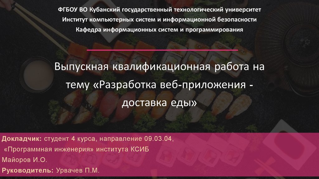 Кафедра информационных систем и программированияВыпускная квалификационная работа на