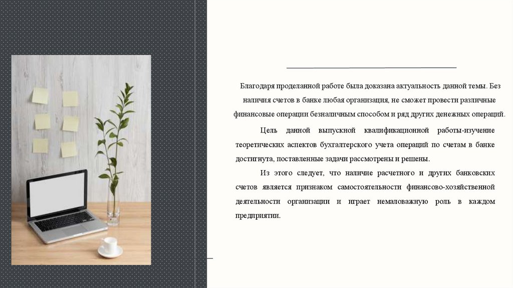 Благодаря проделанной работе была доказана актуальность данной темы. Безналичия счетов в банке любая организация, не сможет провести различные