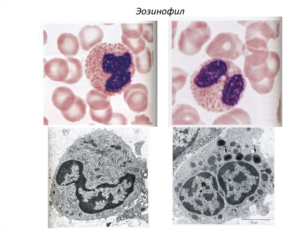вторичные (специфические) гранулы; 5 — зрелые специфические гранулы эозинофила, содержащие