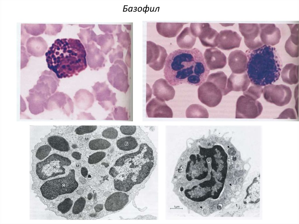 кристаллоиды; 6 — гранулы базофила различной величины и плотности; 7 — периферическая зона, не