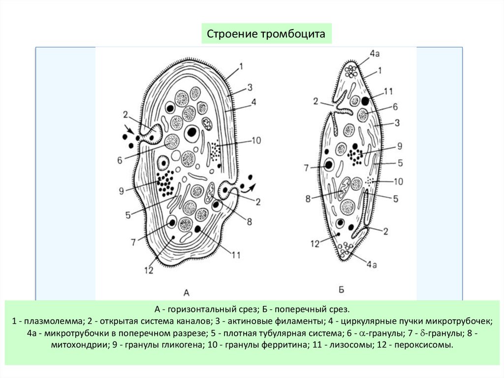 Строение тромбоцитаА - горизонтальный срез; Б - поперечный срез.