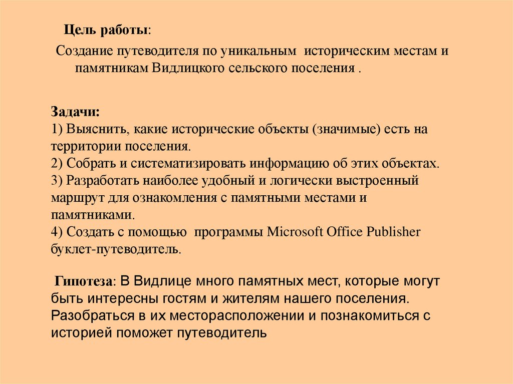 Гипотеза: В Видлице много памятных мест, которые могут