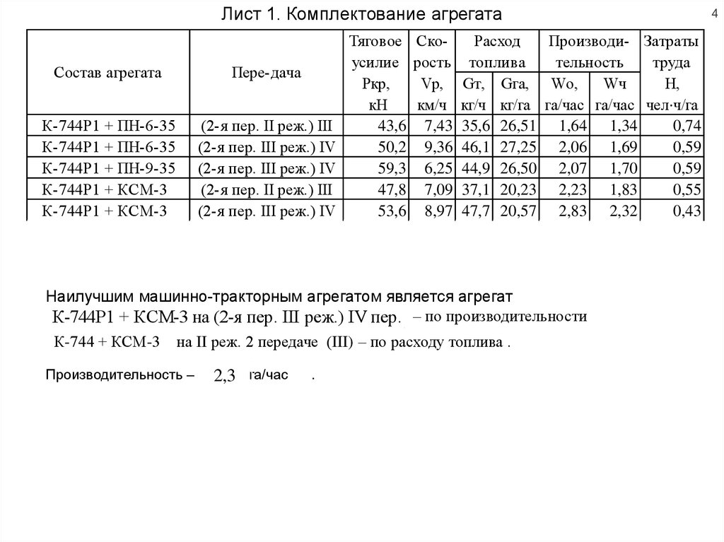«Комплектование агрегата по тяговой характеристике