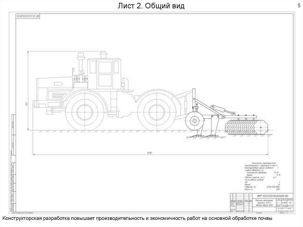 Лист 2. Общий видКонструкторская разработка повышает производительность и экономичность работ на основной обработке почвы