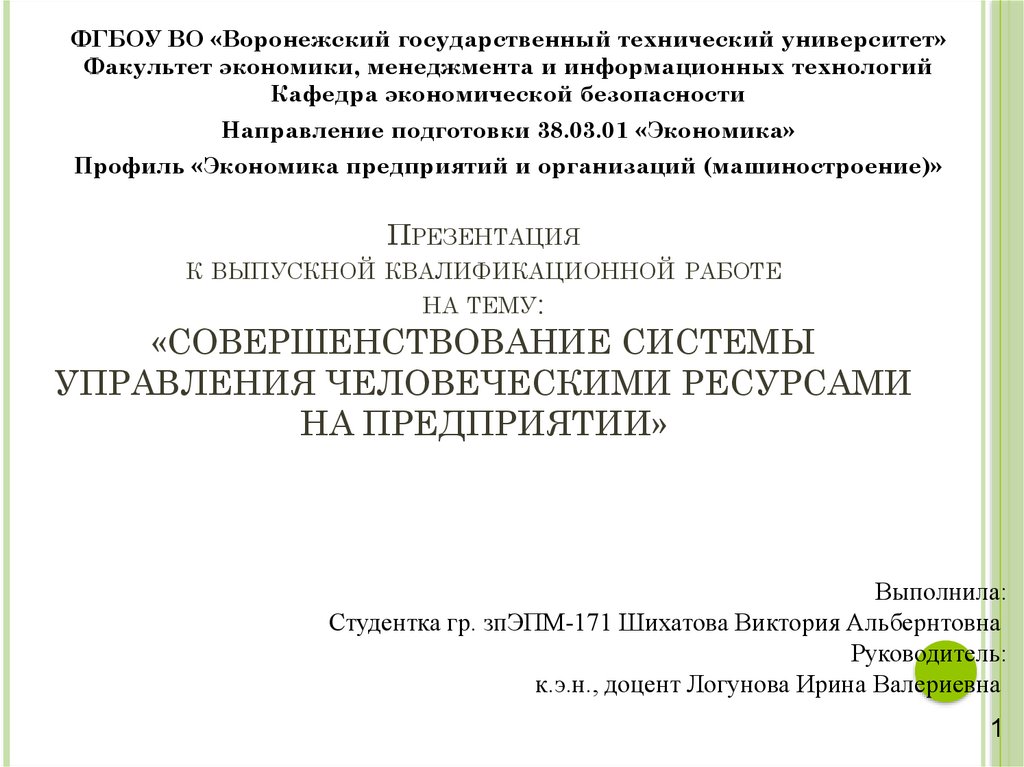 ФГБОУ ВО «Воронежский государственный технический университет»Факультет экономики, менеджмента и информационных технологий