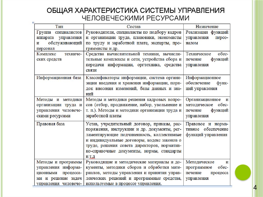 ОБЩАЯ ХАРАКТЕРИСТИКА СИСТЕМЫ УПРАВЛЕНИЯЧЕЛОВЕЧЕСКИМИ РЕСУРСАМИ