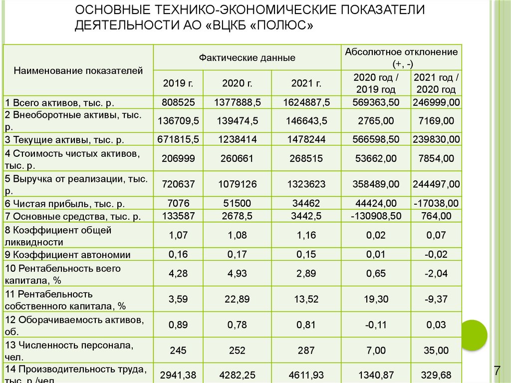 ОСНОВНЫЕ ТЕХНИКО-ЭКОНОМИЧЕСКИЕ ПОКАЗАТЕЛИДЕЯТЕЛЬНОСТИ АО «ВЦКБ «ПОЛЮС»
