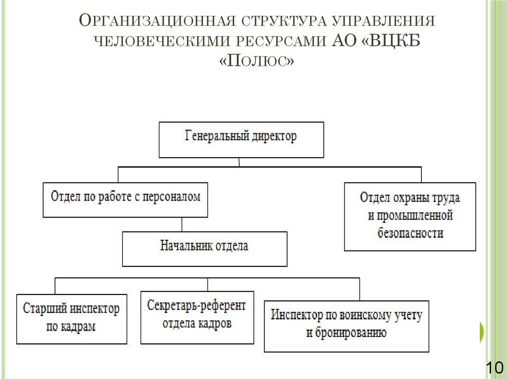 ОРГАНИЗАЦИОННАЯ СТРУКТУРА УПРАВЛЕНИЯЧЕЛОВЕЧЕСКИМИ РЕСУРСАМИ АО «ВЦКБ