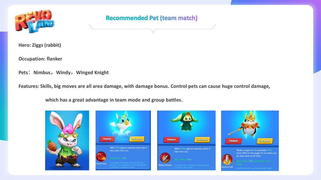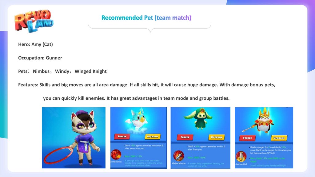 Features: Skills, big moves are all area damage, with damage bonus. Control pets can cause huge control damage,