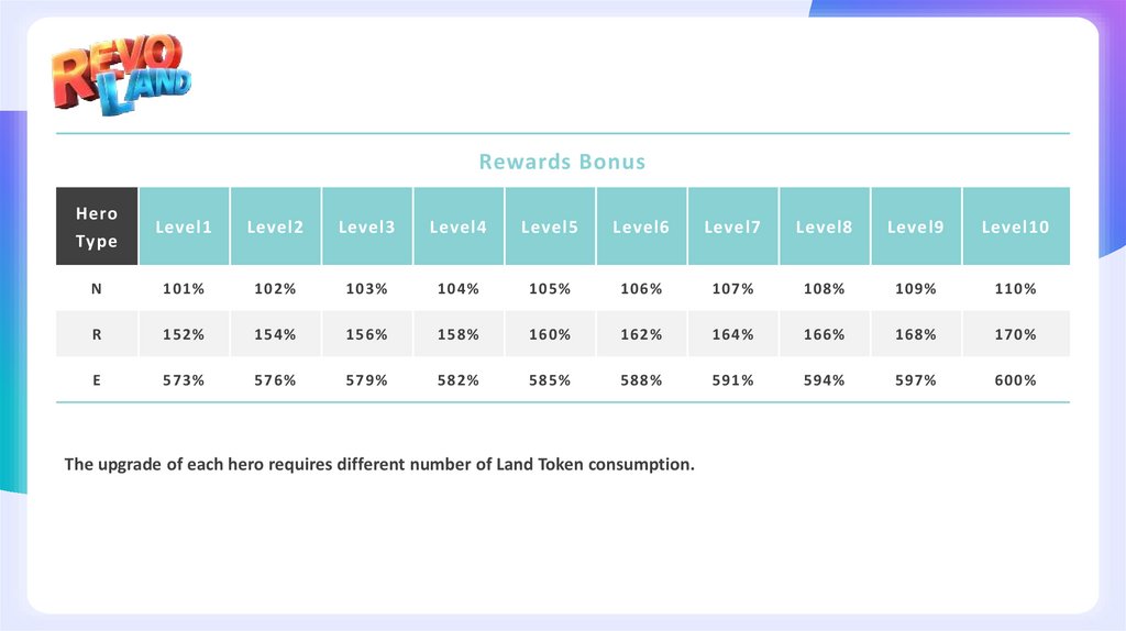 The upgrade of each hero requires different number of Land Token consumption.