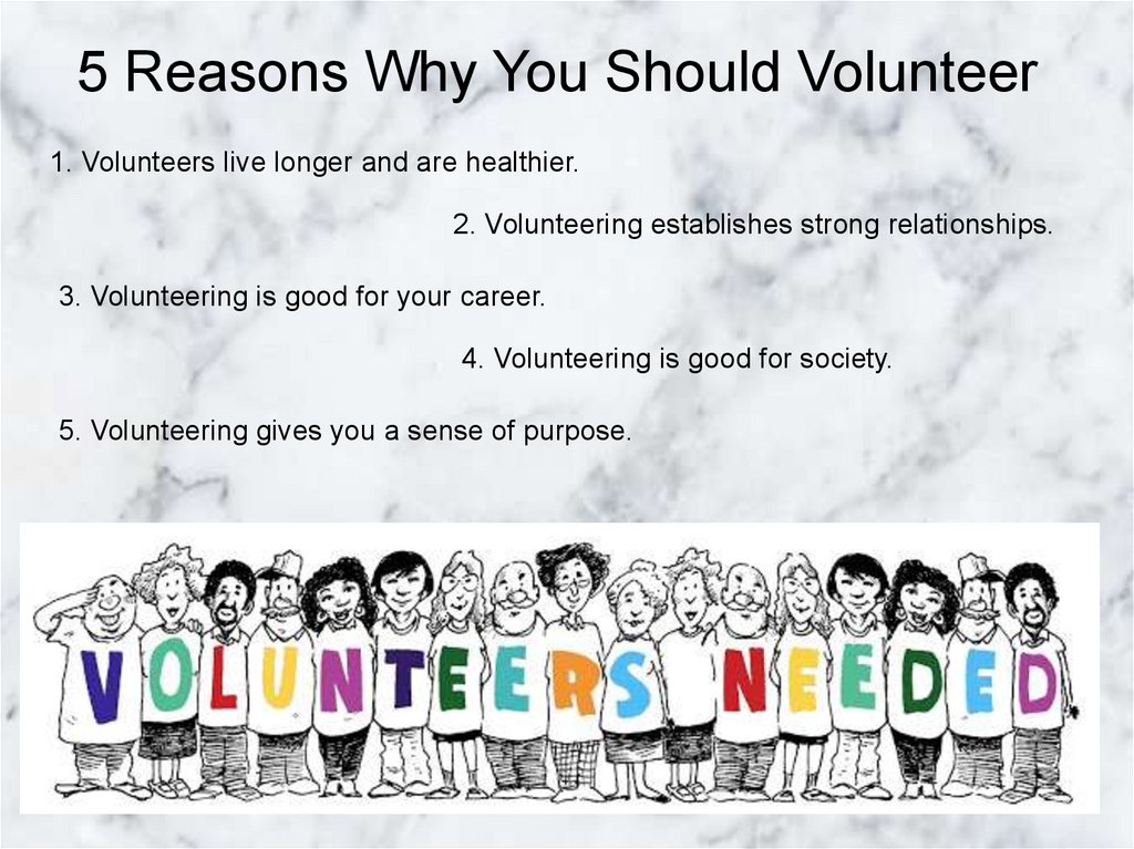 5 Reasons Why You Should Volunteer1. Volunteers live longer and are healthier.