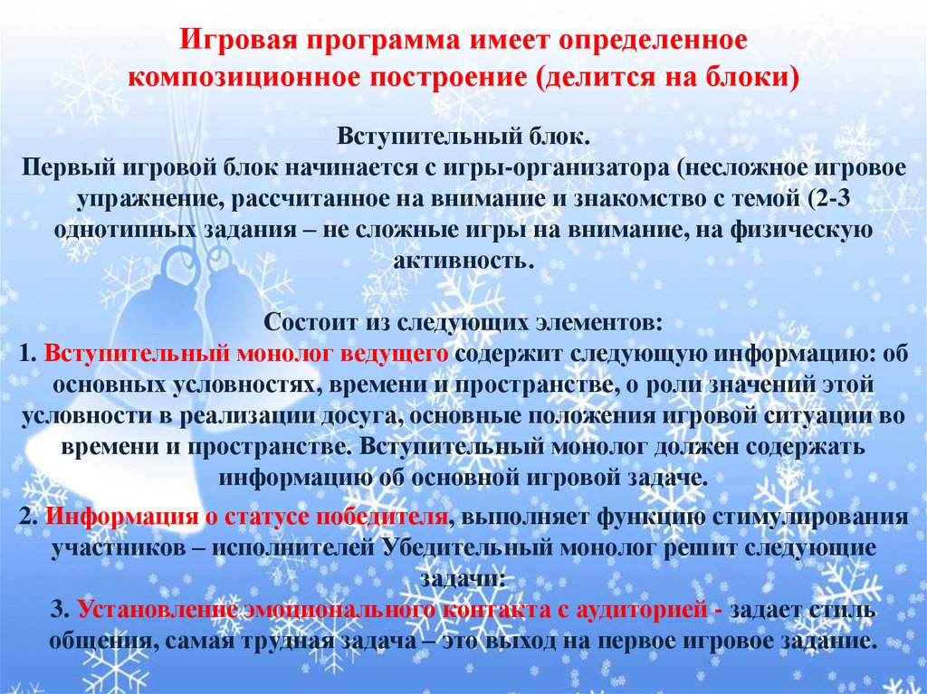 Первый игровой блок начинается с игры-организатора (несложное игровое