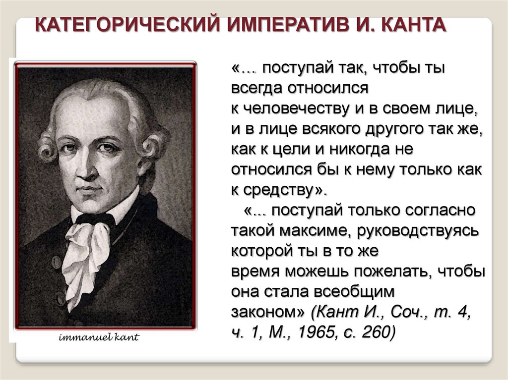 КАТЕГОРИЧЕСКИЙ ИМПЕРАТИВ И. КАНТА«… поступай так, чтобы ты