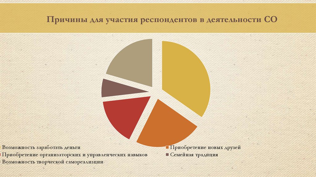 Причины для участия респондентов в деятельности СОВозможность заработать деньги