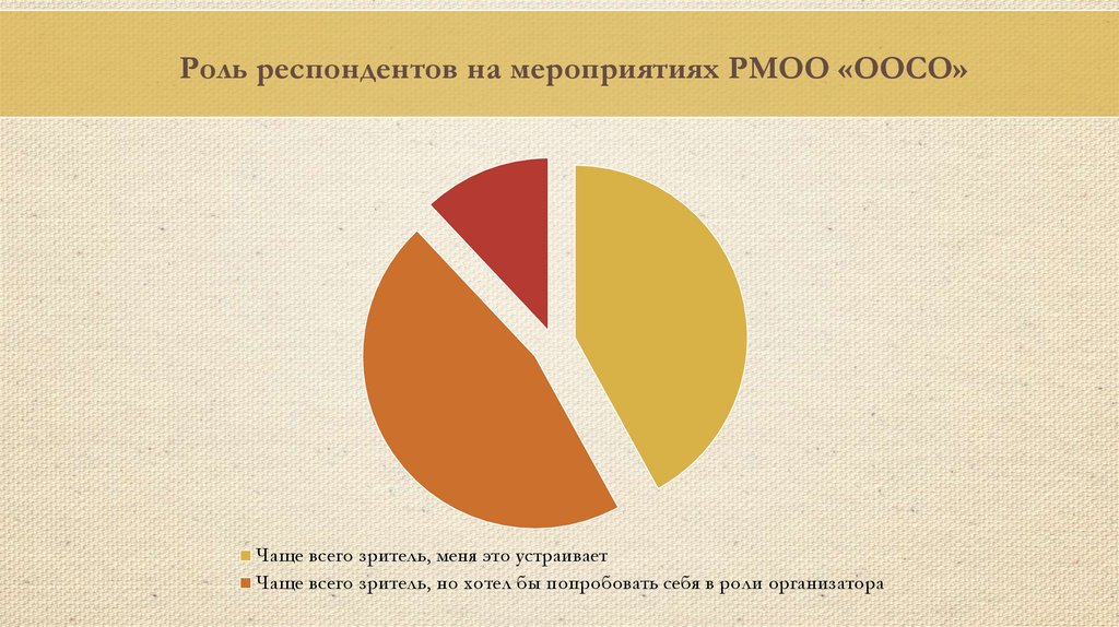Роль респондентов на мероприятиях РМОО «ООСО»Чаще всего зритель, меня это устраивает