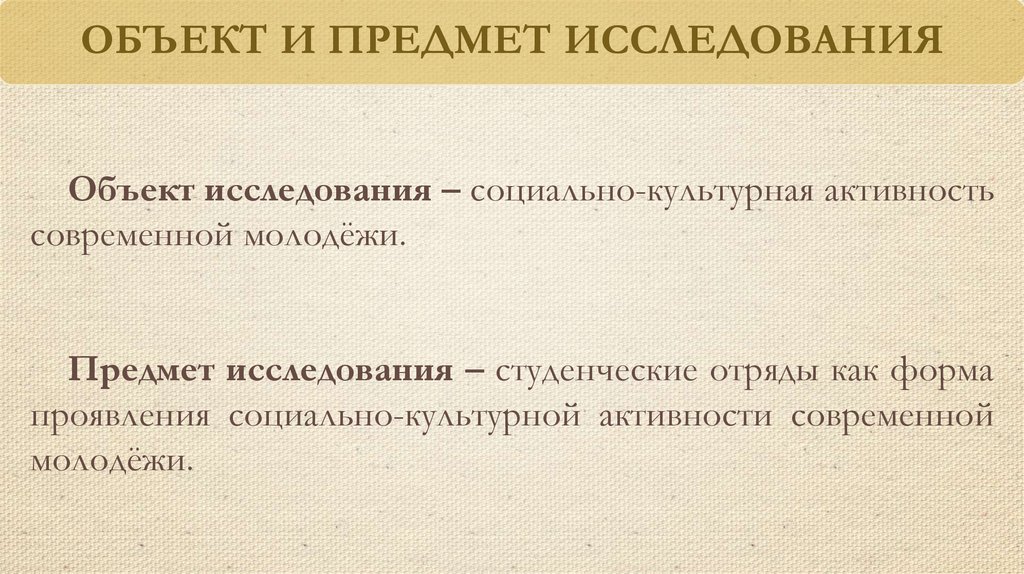 ОБЪЕКТ И ПРЕДМЕТ ИССЛЕДОВАНИЯОбъект исследования – социально-культурная активность