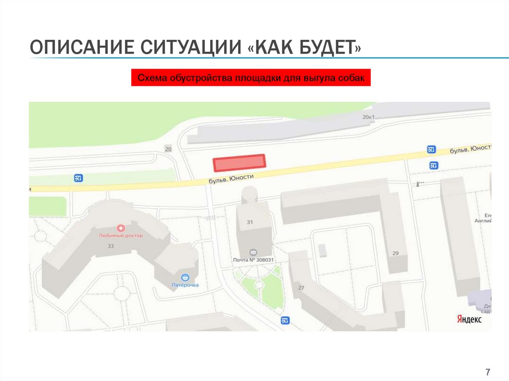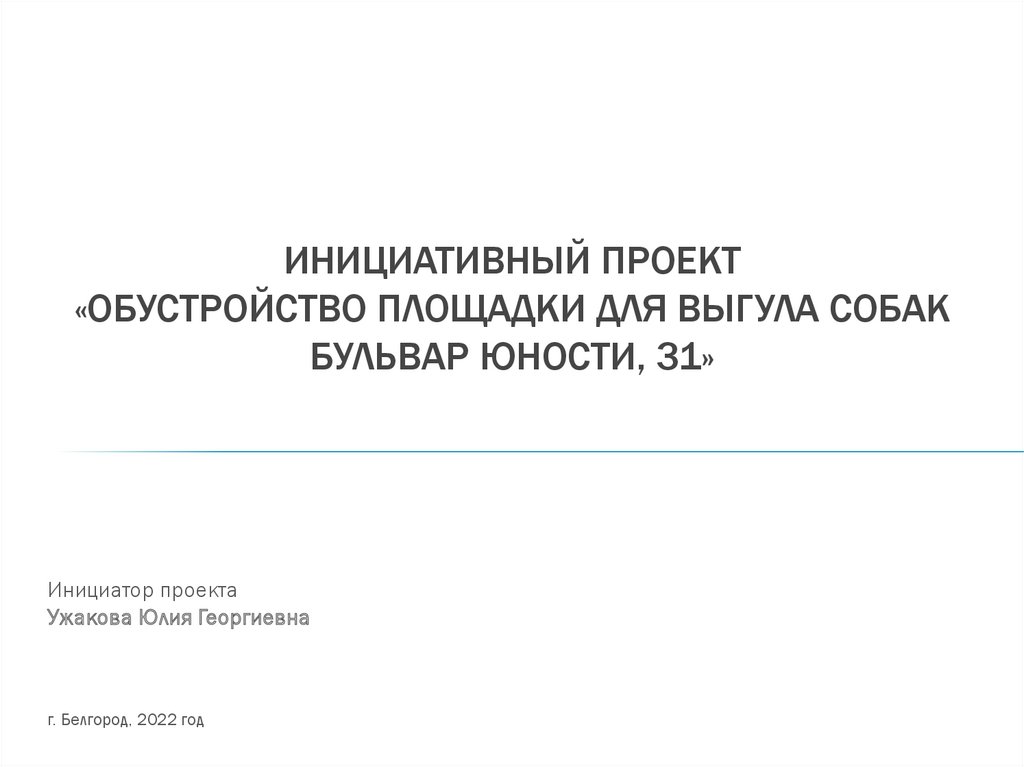 1. Инициативный проект «Обустройство площадки для выгула собак бульвар юности, 31»