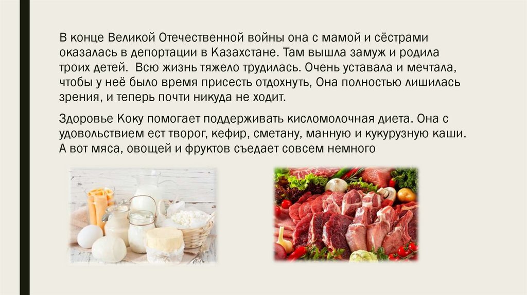 Очень любила айран, другие молочные напитки, никогда не ела послешести вечера. Много двигалась, не любила сидеть без дела. Лишь в