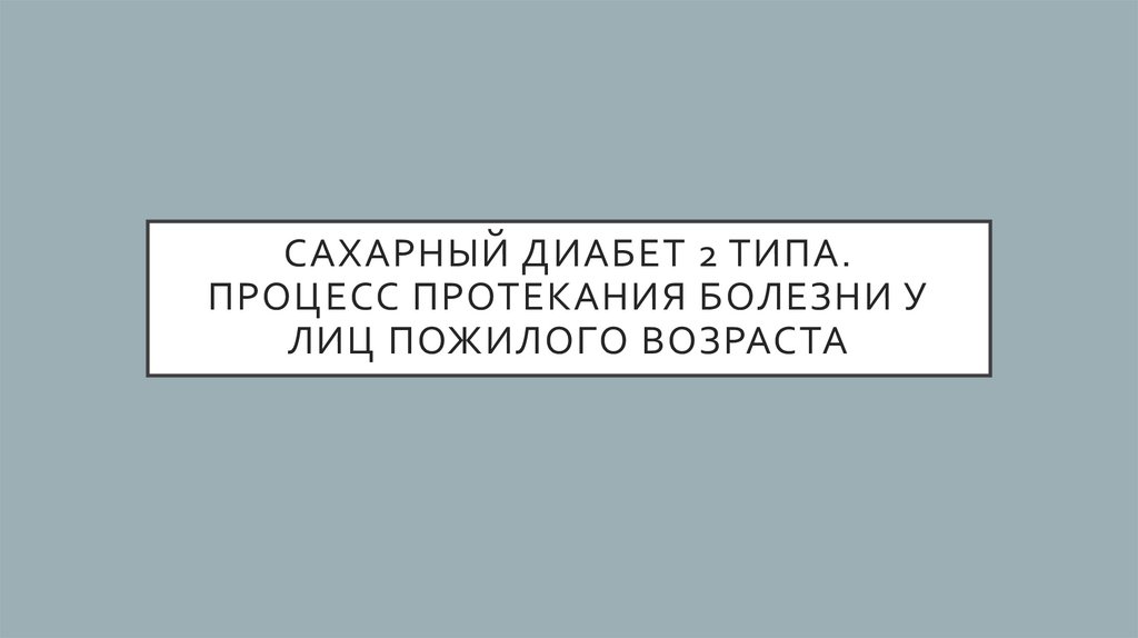 1. Сахарный диабет 2 типа. Процесс протекания болезни у лиц пожилого возраста