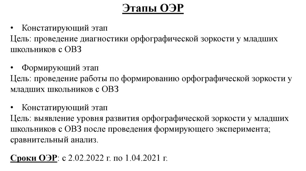 9. Опытно-экспериментальная работа по формированию орфографической зоркости у младших школьников с ОВЗ