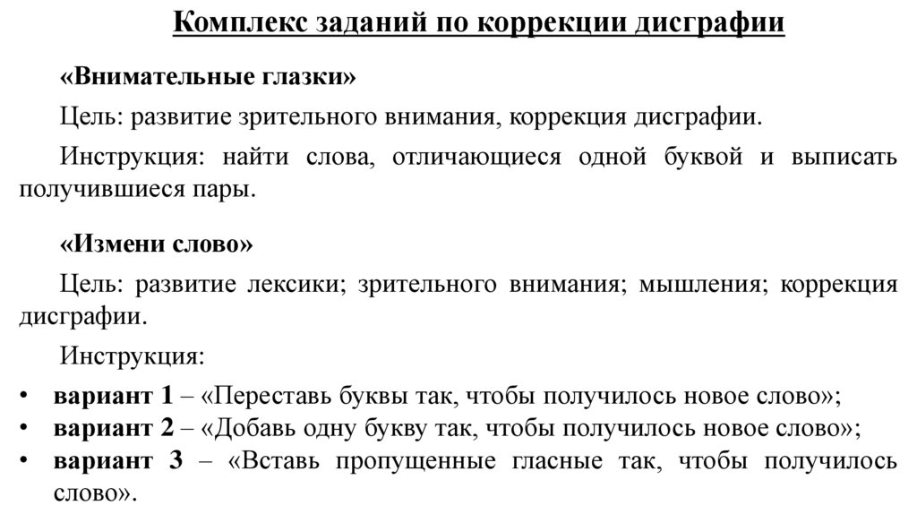 Комплекс заданий по коррекции дисграфии«Внимательные глазки»