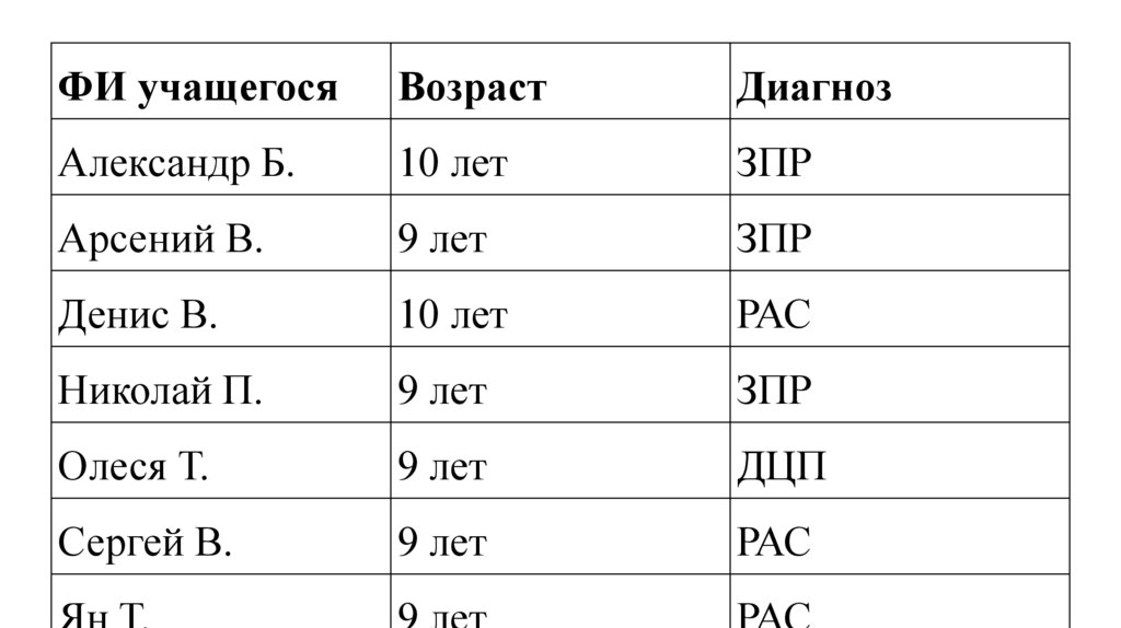 Исследование проводилось с учениками 3 «А» класса (7 человек)